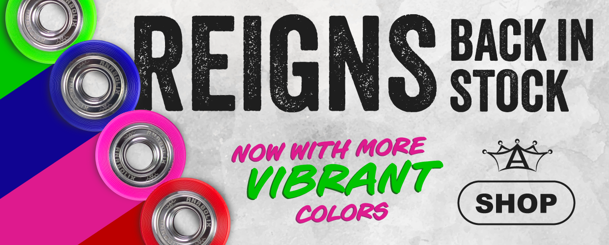 The Reign Series wheels by Anabolix are our fastest wheel. Our durable Vanguard Urethane formula gives you all of the grip you need in corners without sacrificing speed.